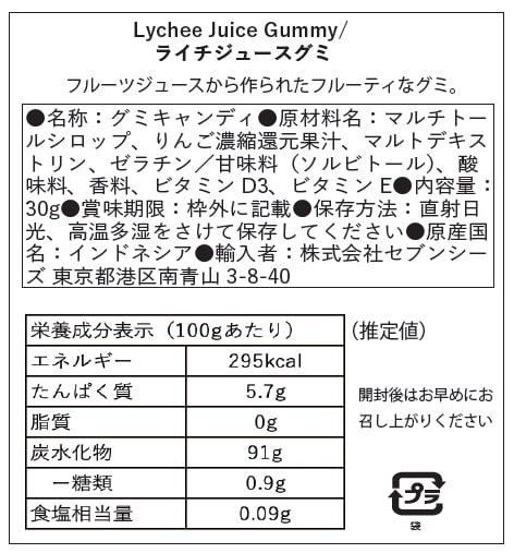 ・Bites ビタミングミ ライチジュース 30g×6袋 - 賞味期限