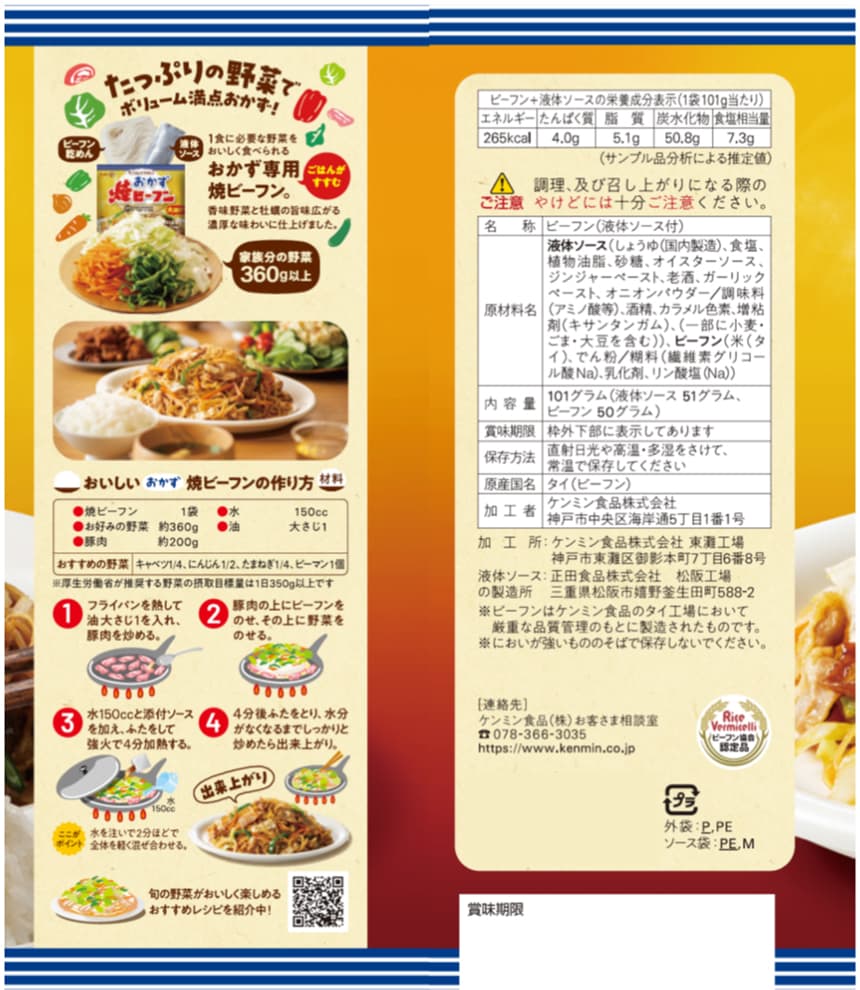 - ・おかず焼ビーフン オイスターソース味 101g(ビーフン50g+液体ソース51g)×30袋