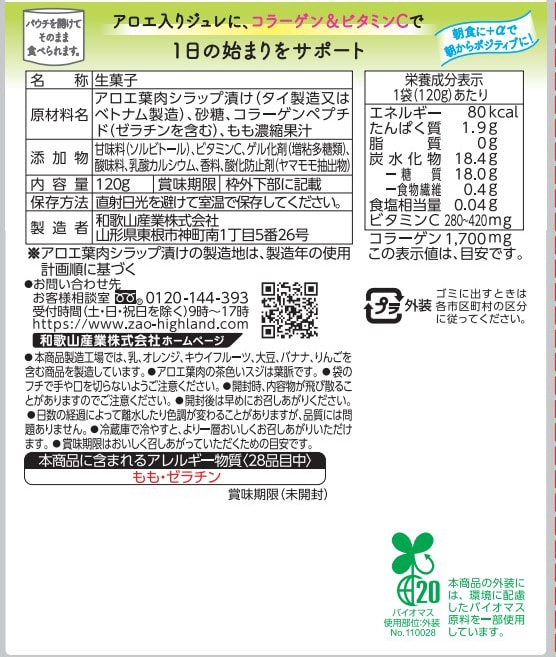[2種計40個]和歌山産業 つるんぷるん アロエ 120g / ナタデココ 120g | 食べるコラーゲン入りアロエ、ナタデココの2種セット
