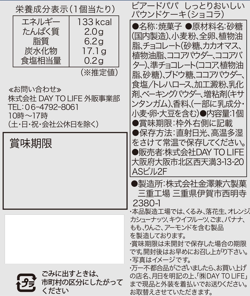 ・ビアードパパのしっとりおいしいパウンドケーキ ショコラ 12個 - 賞味期限