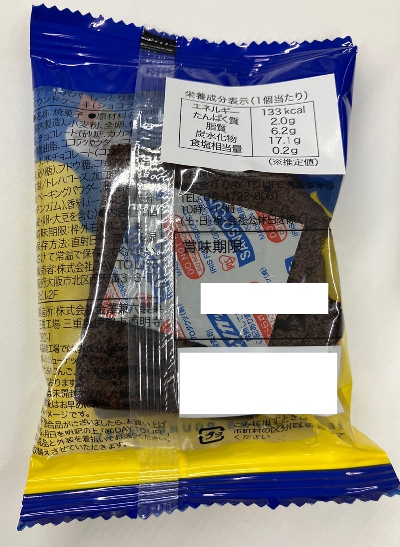 本製品(ショコラ)は、下記の通り、発売当初に「栄養成分表示」の裏面にシール貼付対応商品です。