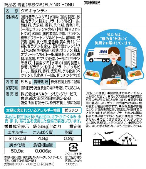 [80個]ANAケータリングサービス 青組FLYING HONU-フライングホヌ- 68g | ANAの成田-ホノルルを結ぶ「フライングホヌ」をイメージした青組シリーズの第3弾!