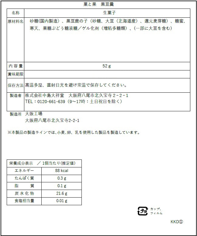 [70個]中島大祥堂 菓と果 黒豆羹 52g | 琥珀色の錦玉に北海道産黒豆が輝く。目にも美しい、涼やかで上品な味わいをお届けします。