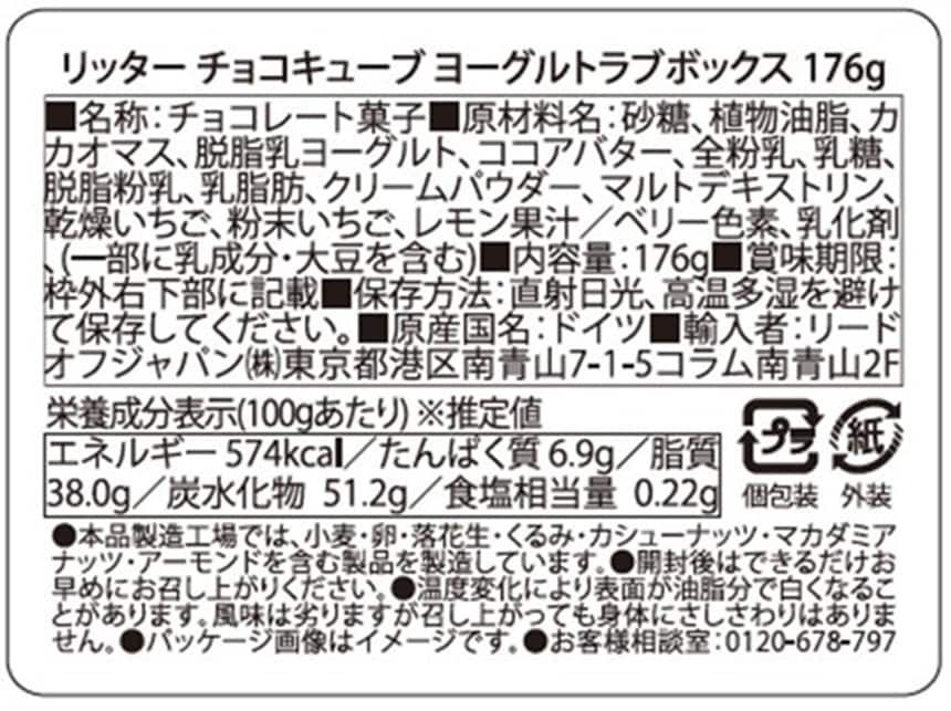- リッター チョコキューブ ヨーグルトラブボックス 176g