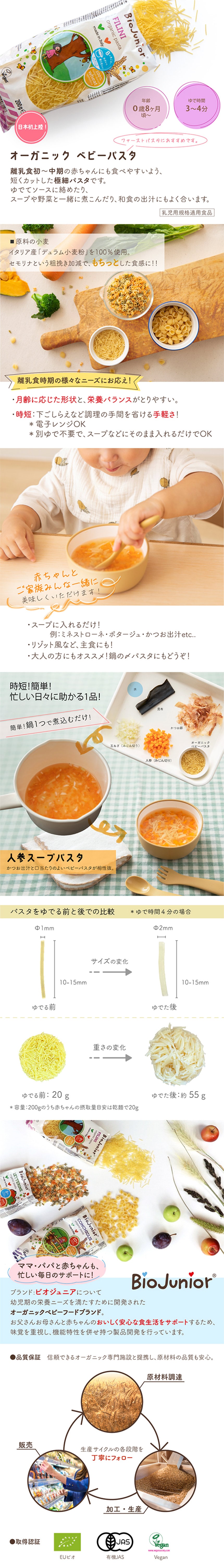 離乳食中期からの赤ちゃんが食べやすいよう、極細のパスタを短くカットしています。