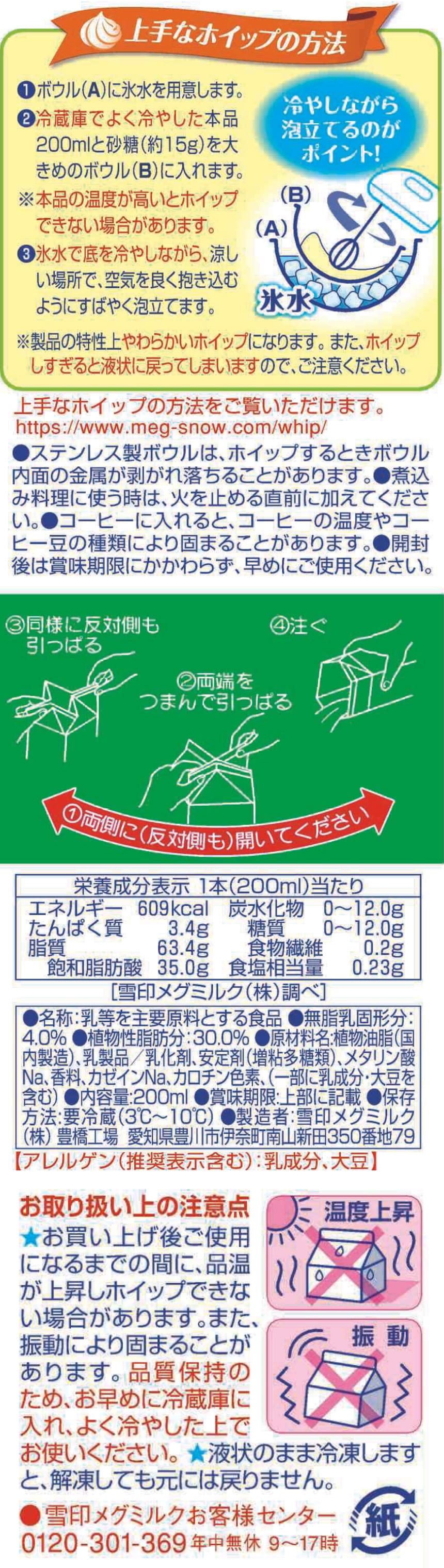 - ホイップかるい口どけ 植物性脂肪30% LL200ml