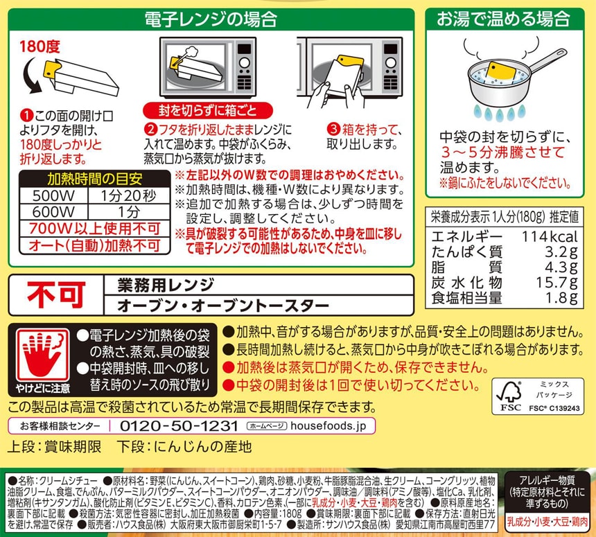 [20食]ハウス食品 ほっとシチュー コーン 180g | なめらかな口当たりとやさしい味わいのコーンシチューです。