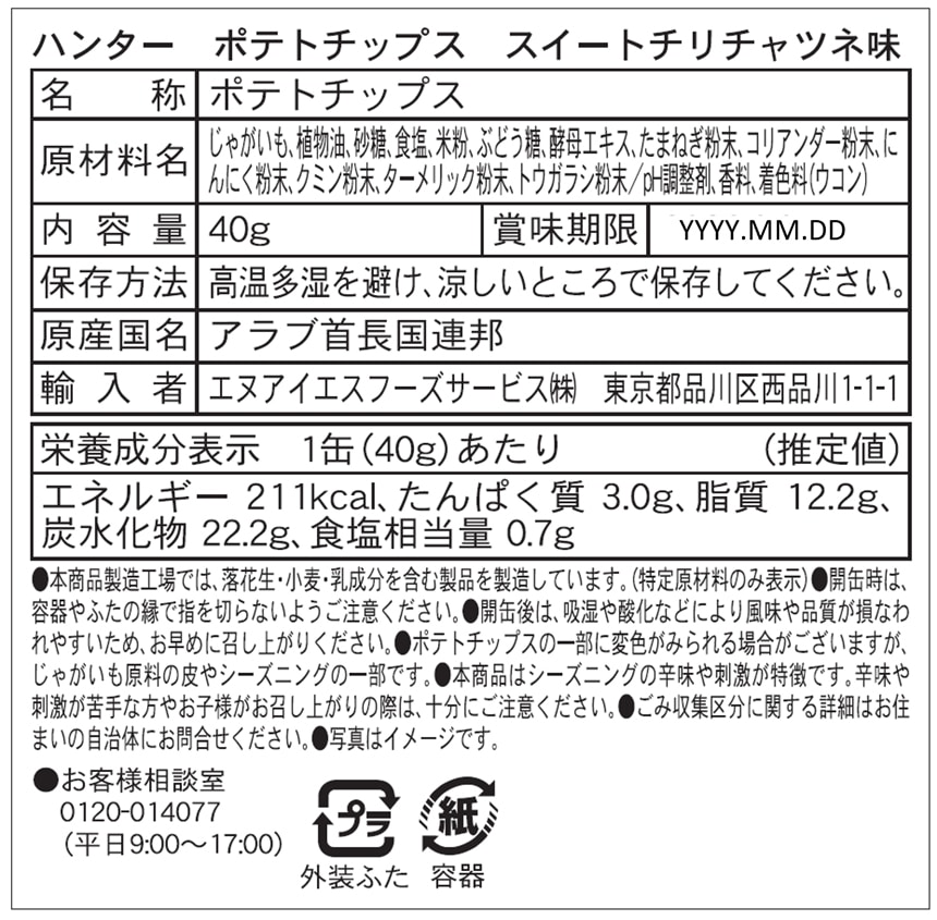 - ハンター ポテトチップス スイートチリチャツネ味 40g