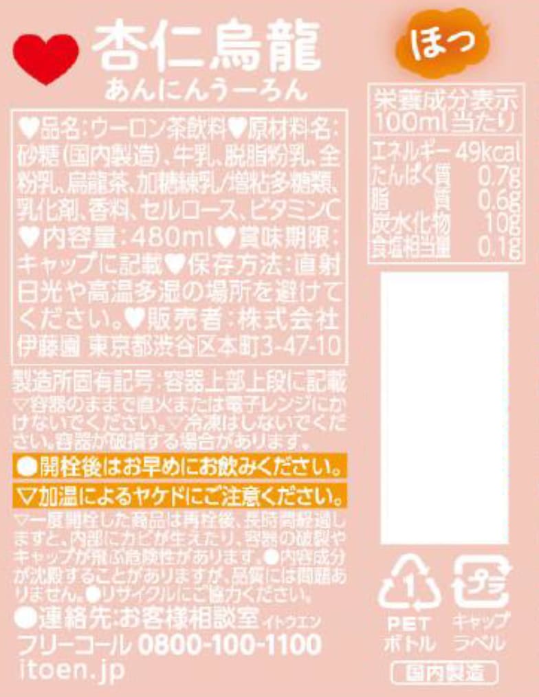 [48本]伊藤園 杏仁烏龍 PET 480ml | “飲むスイーツ”