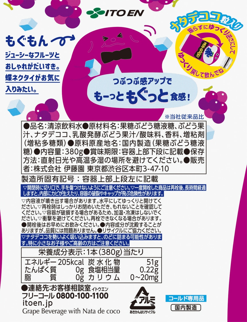 - もぐっと ナタデココ&芳醇ぶどう ボトル缶 380g