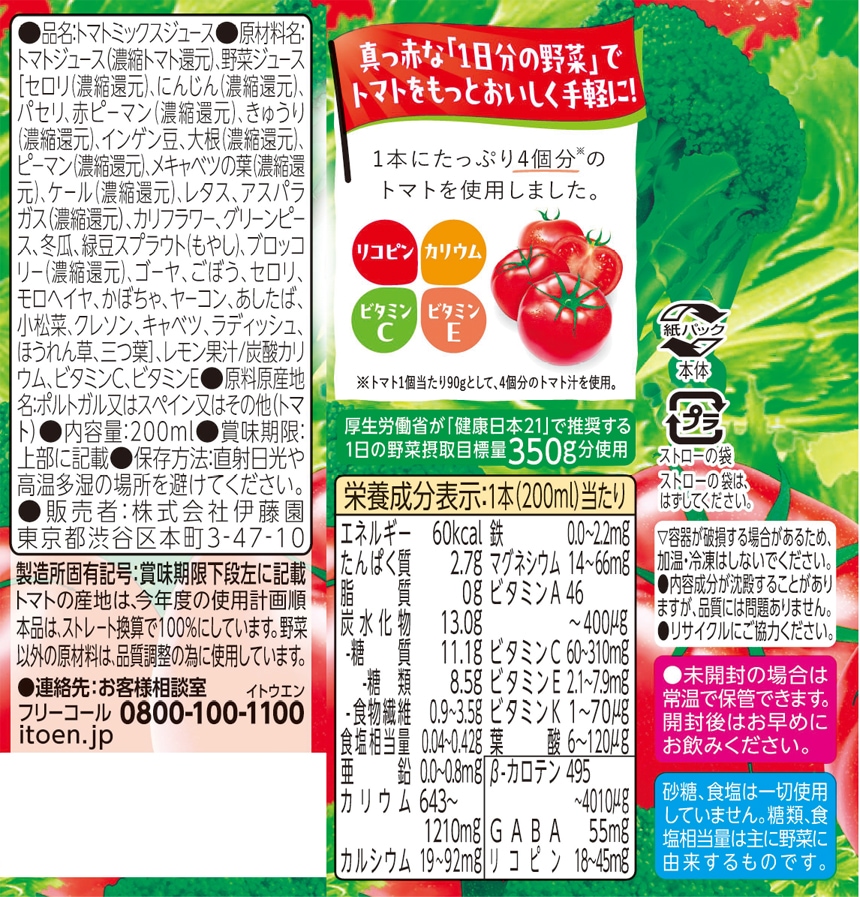 厚生労働省が推奨する1日の摂取目標量350g分の野菜を使用し、トマト4個分の「リコピン」(※2)や