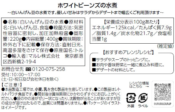 ・ホワイトビーンズの水煮 400g(固形量220g)×8個 - 賞味期限