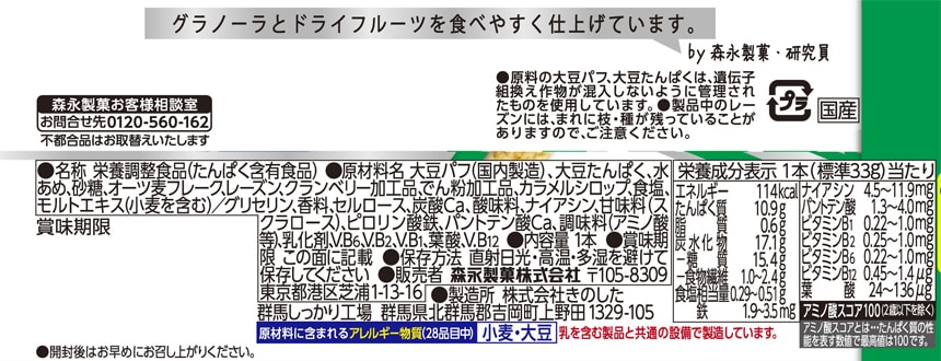 [計56本]森永製菓 inバープロテイン<グラノーラ> 14本入×4個 | 1本で「植物性タンパク質」が10g摂れるプロテインバーです。