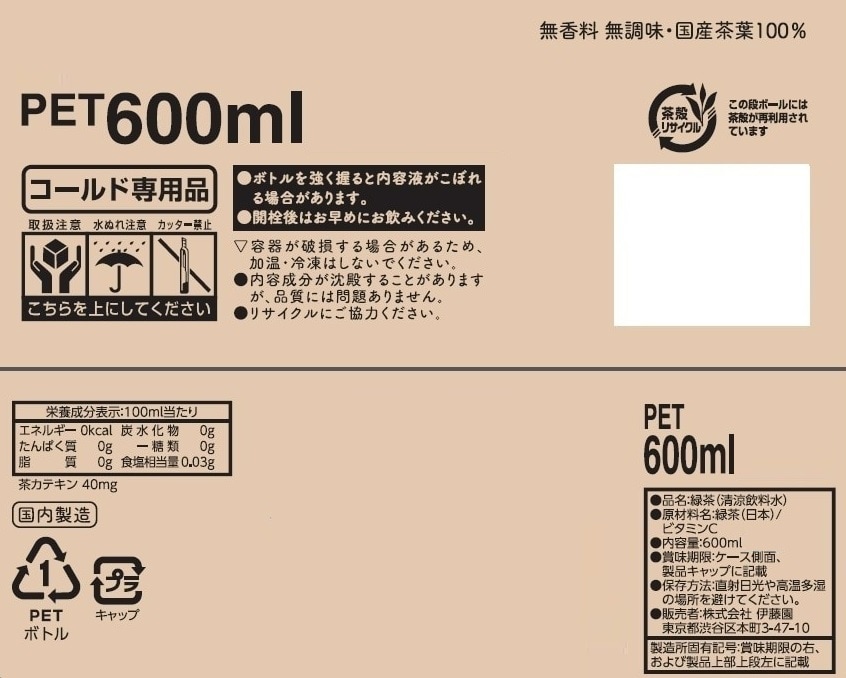 - お~いお茶緑茶 ラベルレス PET 600ml