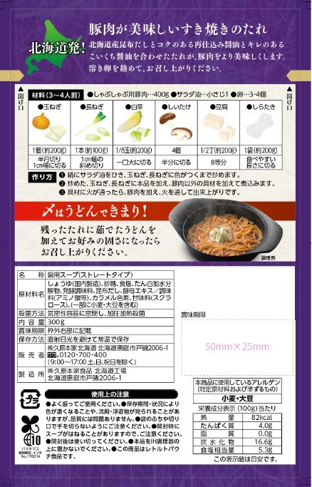 [24袋]久原醬油 北海道 豚すき焼き 300g | 北海道産昆布だしとコクのある再仕込み醤油とキレのあるこいくち醤油を合わせたすきやきのたれです。