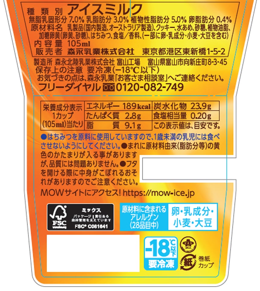 [54個]森永乳業 MOWプライム シナモンクッキーハニーミルク 105ml | ミルクのおいしさを追求したアイスと厳選した素材感のある具材とのマリアージュを楽しめるアイス。