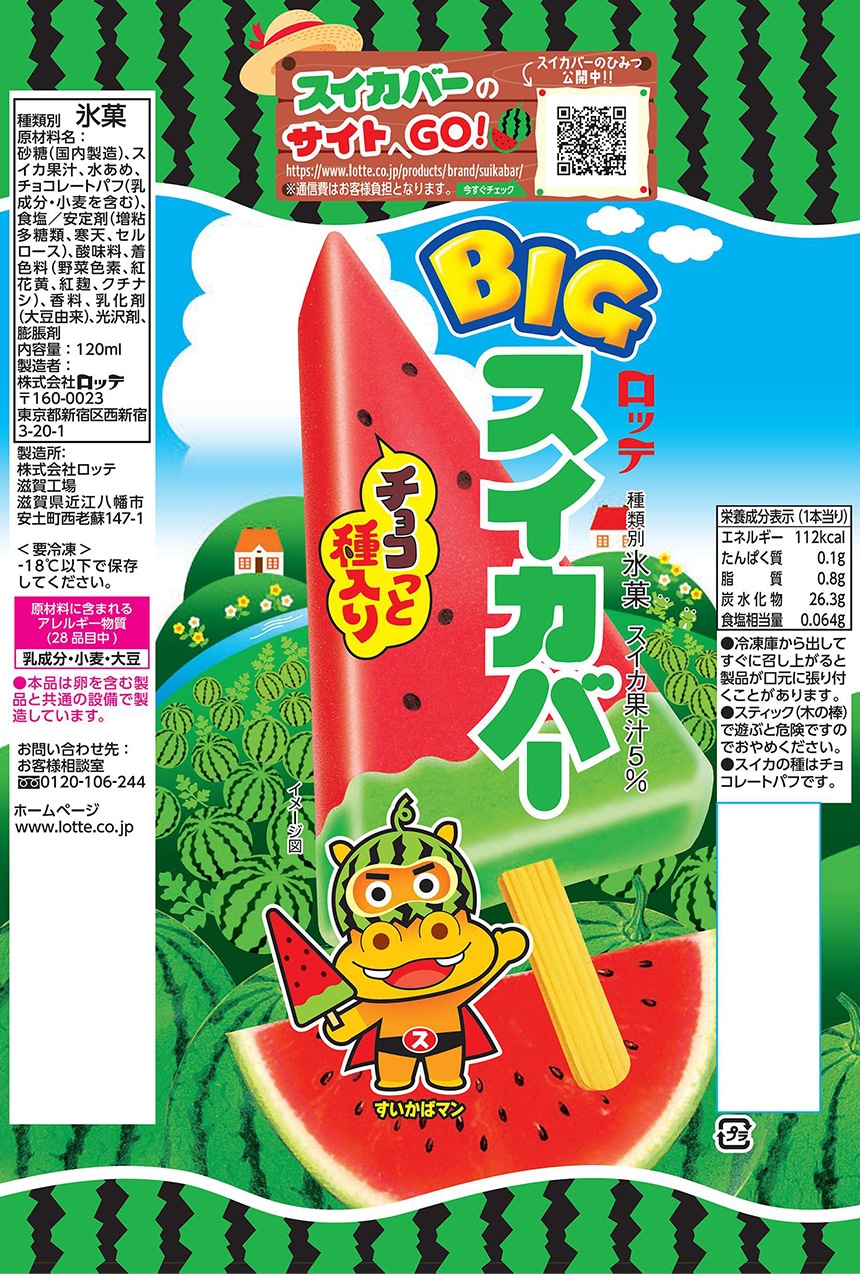 サクサクとしたチョコ種が入った、まるでスイカのような形をした、見た目も食感も楽しいアイスバーです