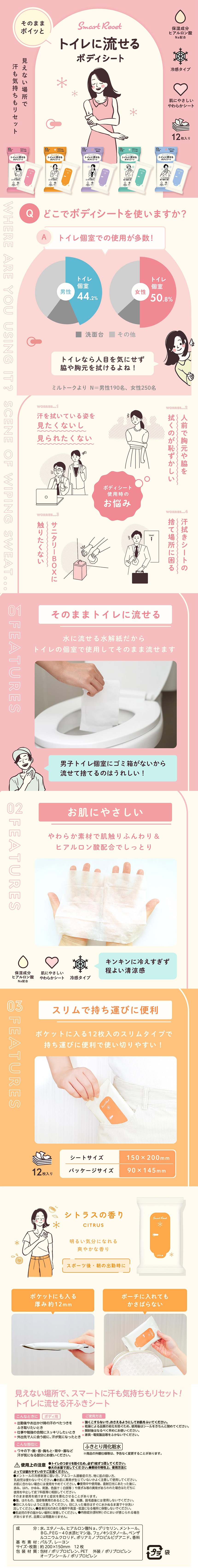 - トイレに流せる ボディシート 12枚入 (シトラスの香り)
