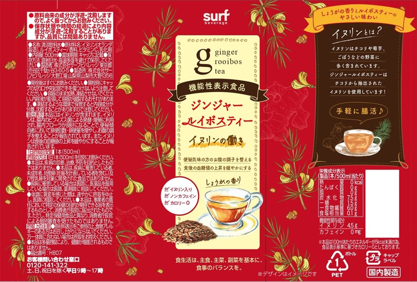 [48本]【機能性表示食品】サーフビバレッジ ジンジャールイボスティー 500ml | 一日を通して楽しめる、からだにやさしい素材のブレンド