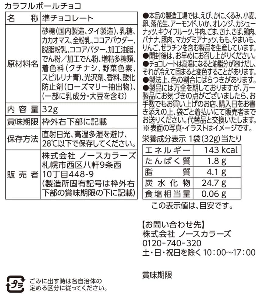 [24個]ノースカラーズ カラフルボールチョコ 32g | カリッと食感が楽しいカラフルチョコ