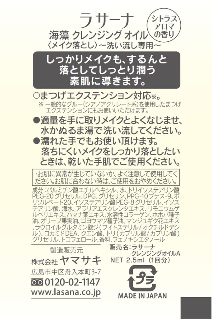 [100個]ヤマサキ ラサーナ 海藻クレンジングオイル パウチ 2.5ml (試供品)