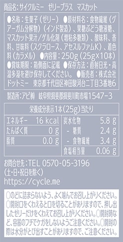 ・サイクルミー ゼリープラス マスカット 計100本(250g(25g×10本)×10個)