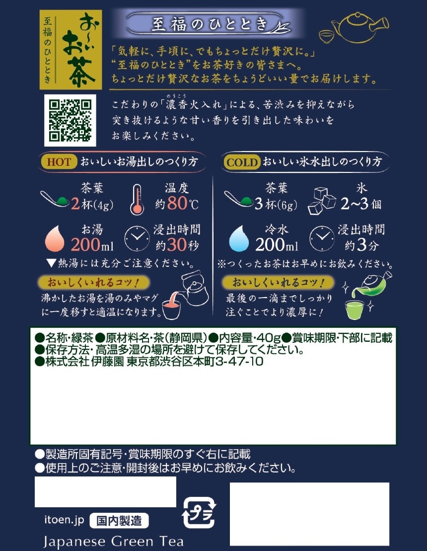 [10袋]伊藤園 お~いお茶 至福のひととき ぐっと香る甘香緑茶 40g | ちょっとだけ贅沢なお茶を、ちょうどいい量で。突き抜けた甘く香ばしい香りの緑茶です。