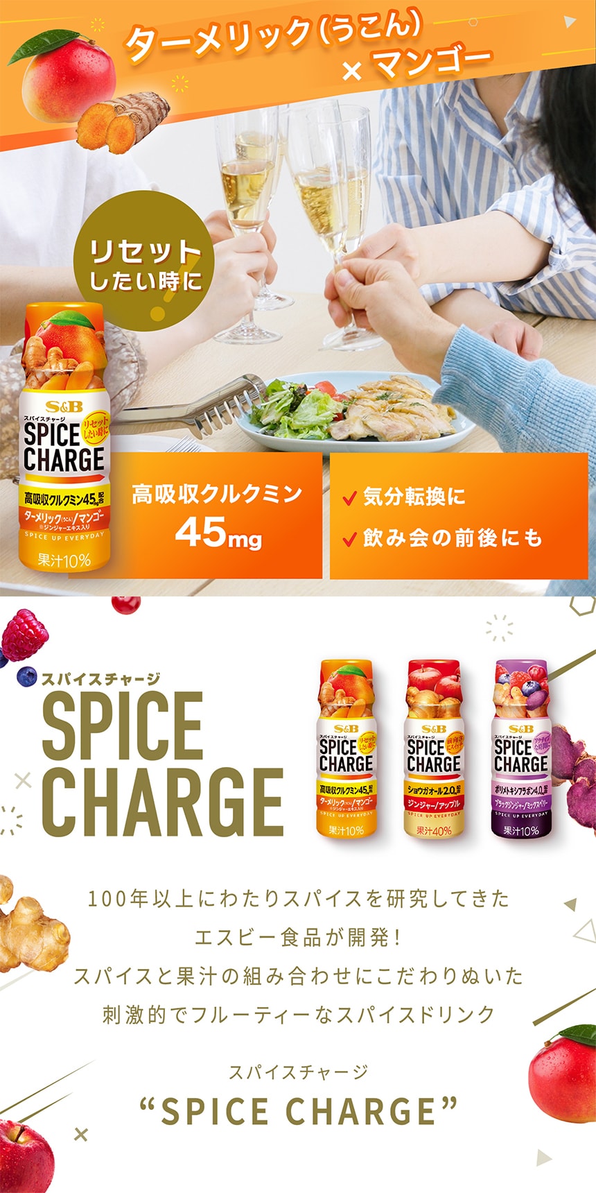 [20本]エスビー食品 スパイスチャージ ターメリック/マンゴー 50ml | スパイスと果汁の組み合わせにこだわりぬいたターメリックのスパイスドリンク