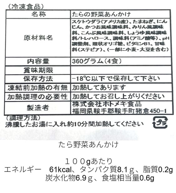- たらの野菜あんかけ 360g(4食)