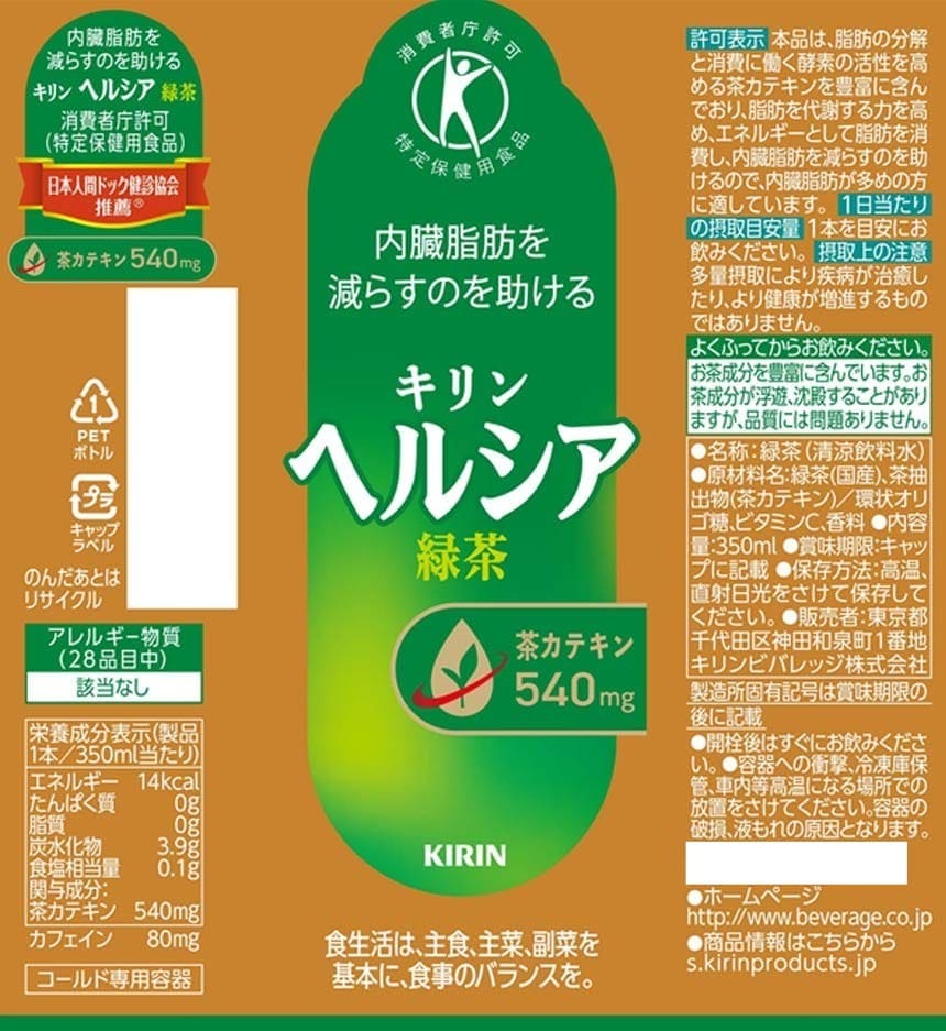 [24本]【特定保健用食品】キリンビバレッジ ヘルシア 緑茶 PETスリム 350ml | 内臓脂肪を減らすのを助ける、濃く深い味わいのトクホの緑茶飲料。