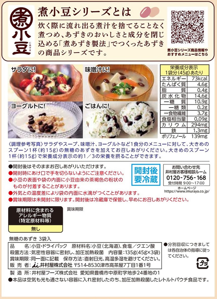 井村屋 無糖のあずき (45g×3袋入)×10個 | 毎日の食事に入れておいしく食べられる煮小豆シリーズの「無糖のあずき」です。