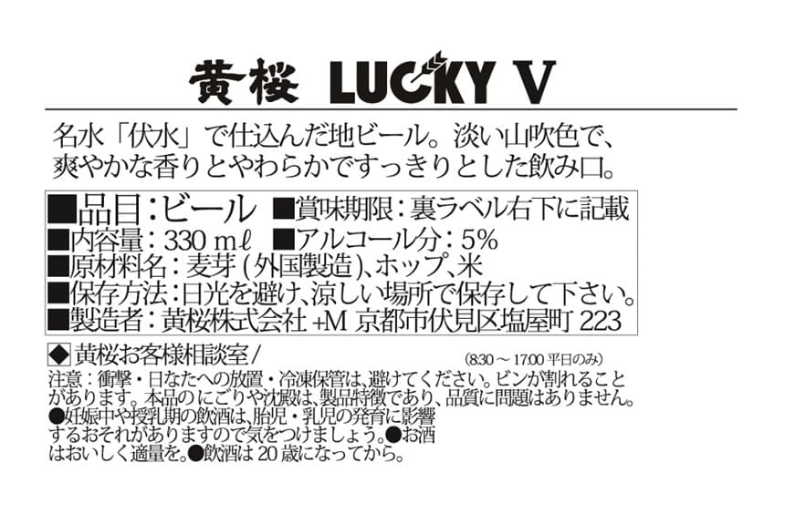 [24本]黄桜 LUCKY V 瓶 330ml | 日本酒仕込に用いる酒造好適米を副原料に使用し、アルコール度数5%の味わいやすいビールとなっています。