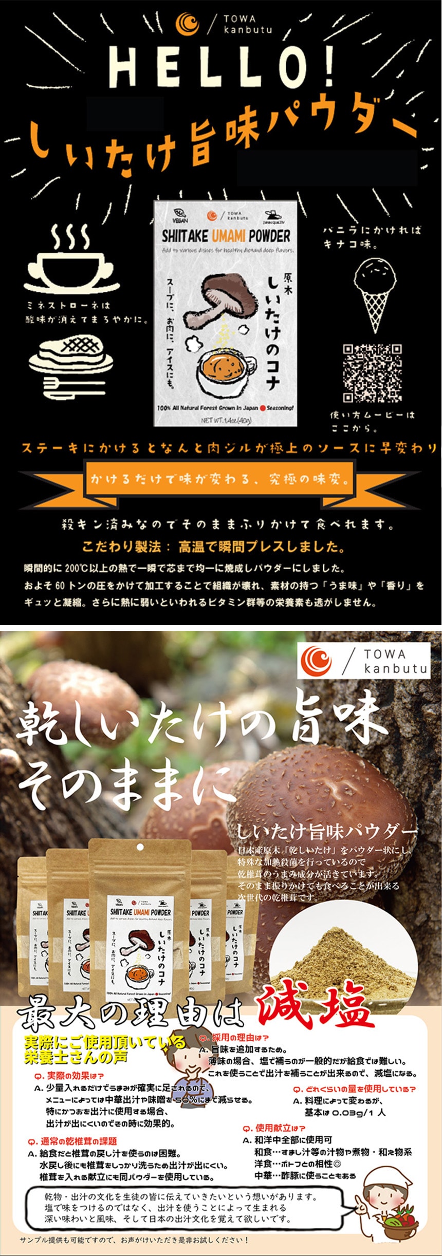 藤和乾物 しいたけ旨味パウダー 40g×20袋 | 「ふりかけて」そのままお召し上がりいただけます。