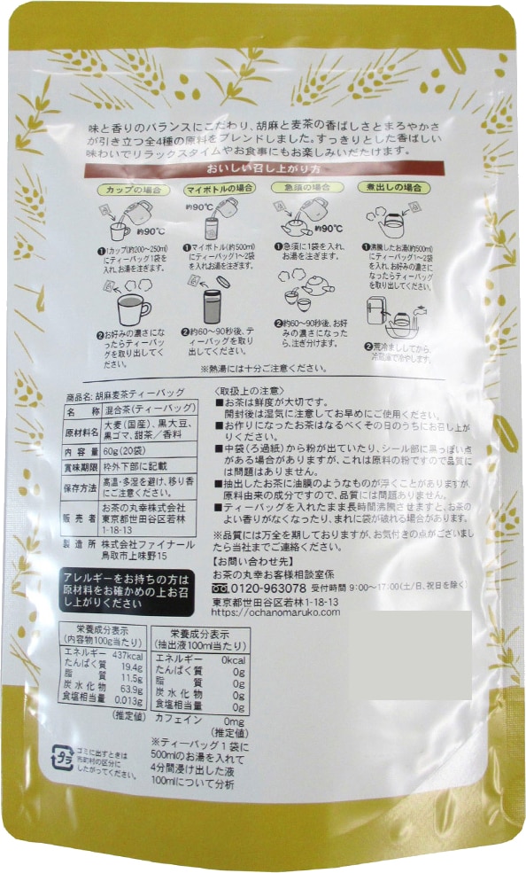 味と香りのバランスにこだわり胡麻と麦茶の香ばしさとまろやかさが引き立つ全4種の原料をブレンドしました。