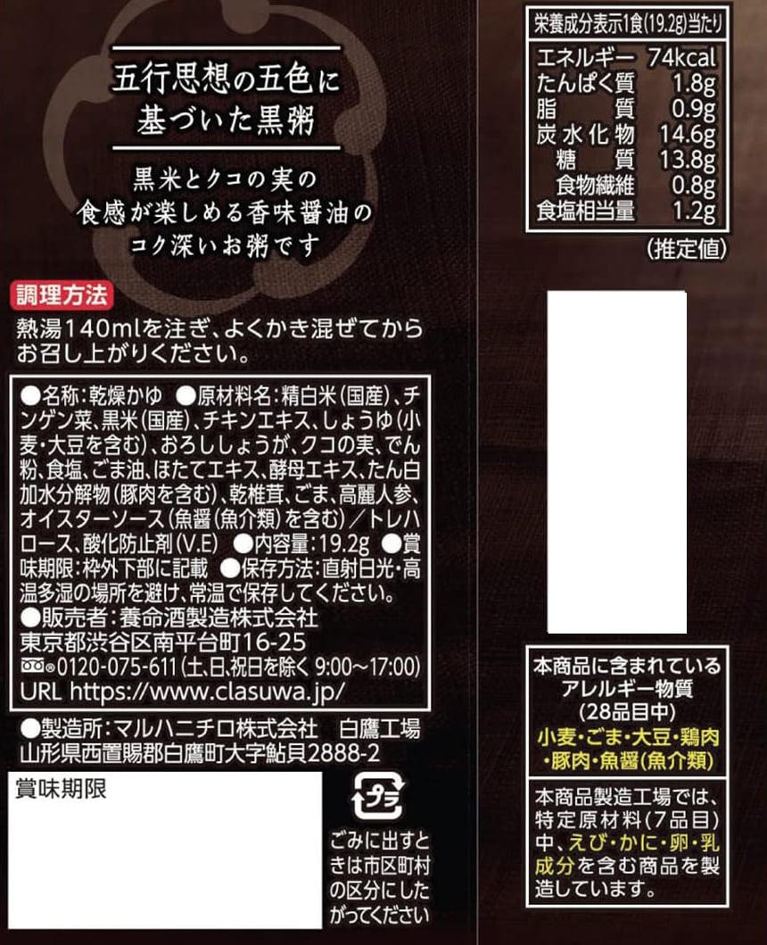 養命酒製造 五養粥 黒 19.2g×10個 | やみつきになる香味醤油が香る中華味のお粥です。
