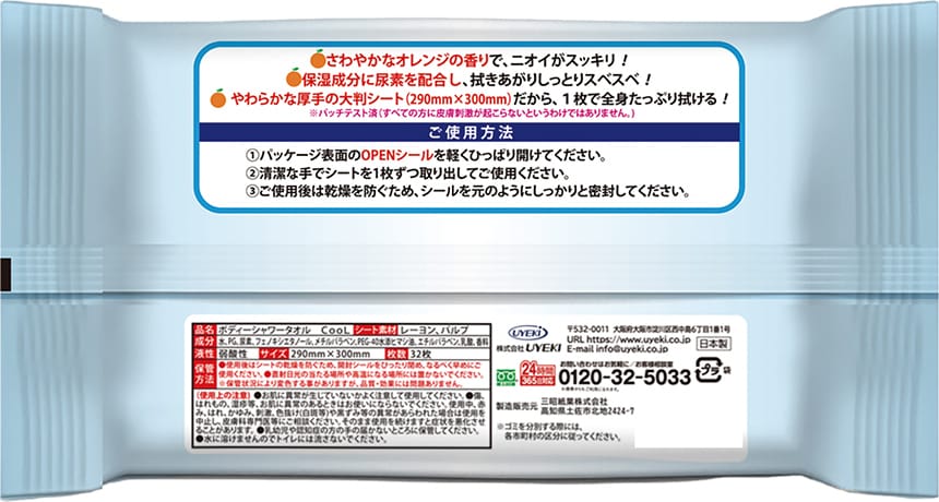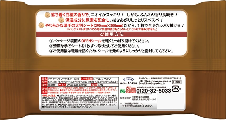 [2種計6個]UYEKI ボディーシャワータオル CooL 32枚入 / 白檀 32枚入