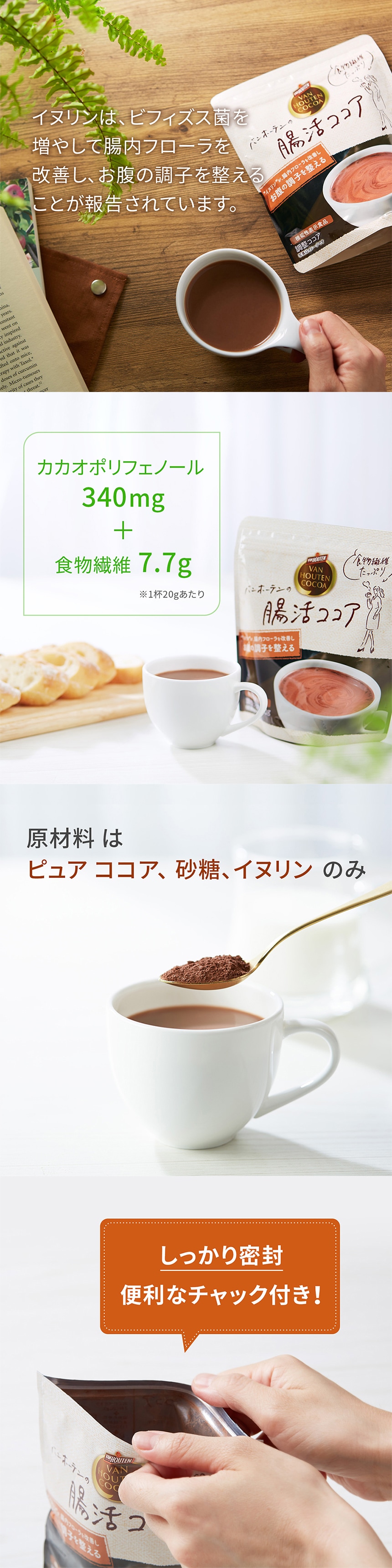 イヌリンがお腹の調子を整える食物繊維たっぷりの本格ココア!