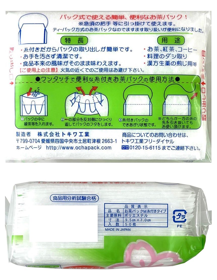 お茶パック M 糸付タイプ 50枚×50袋 | バック式で使える簡単、便利なお茶パック!急須の把手等に引っ掛けて使えます。