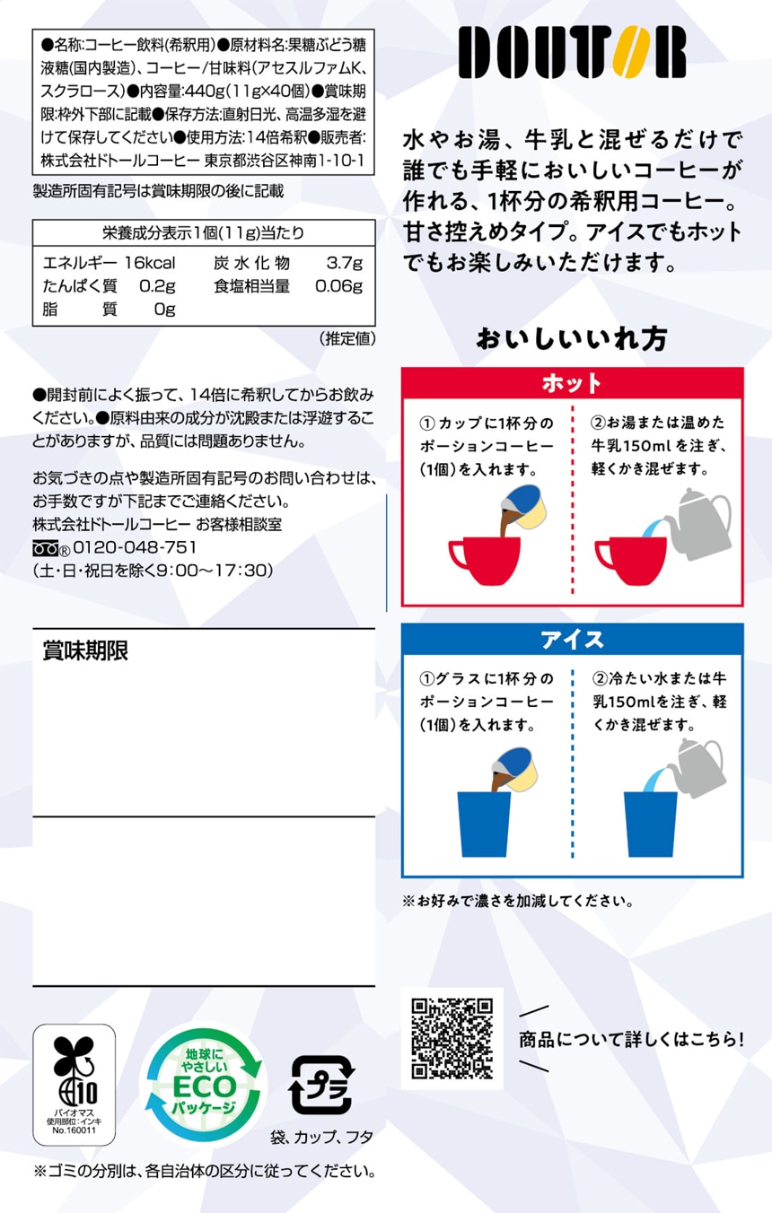 [計200杯]ドトールコーヒー ポーションコーヒー 甘さ控えめ 40個入 | 誰でも手軽にカフェタイム!