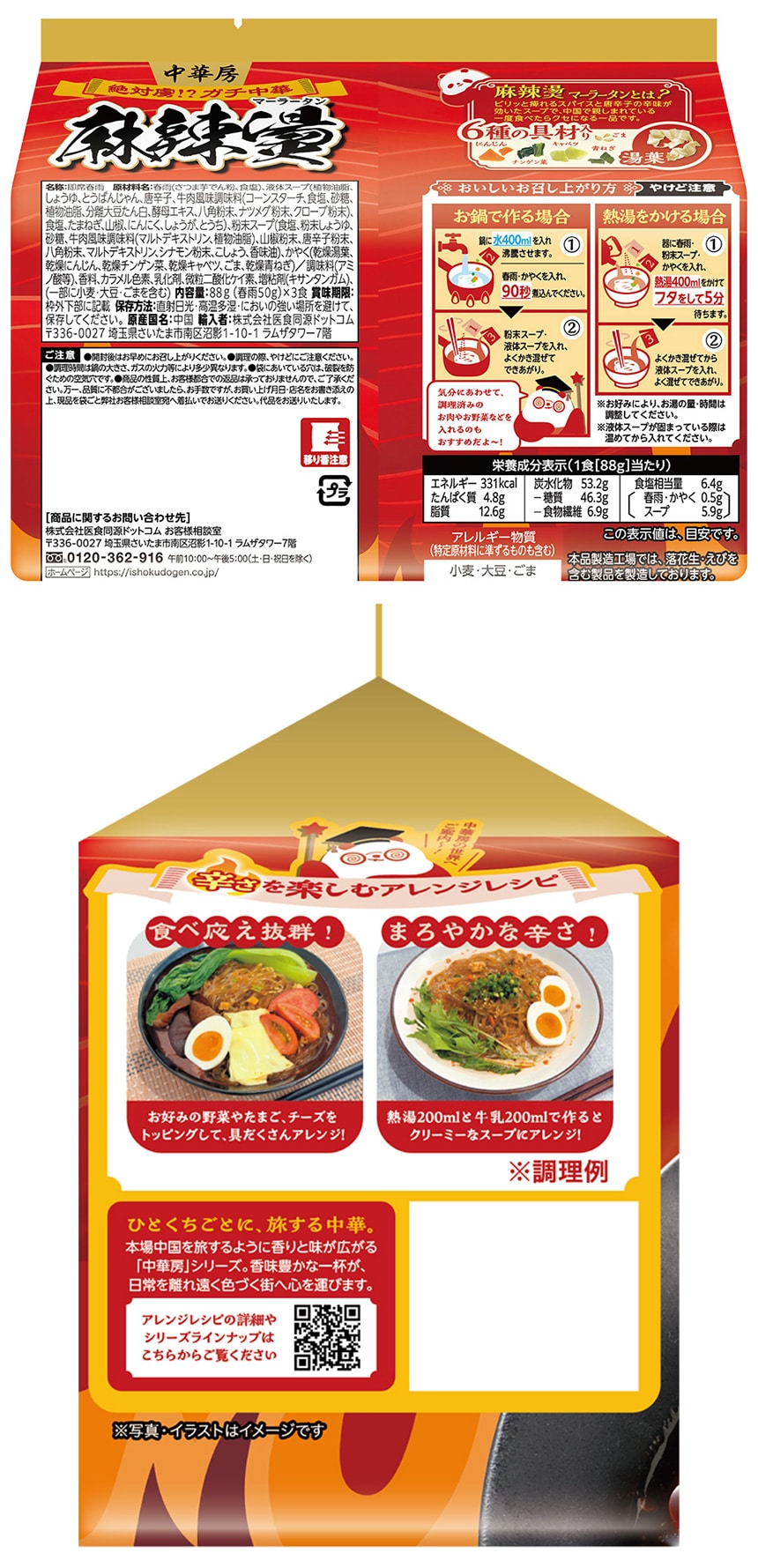医食同源ドットコム 中華房 麻辣湯(袋麺) 3食×12袋 | 大人気の麻辣湯に袋タイプが登場!好きな具材でアレンジ可能!