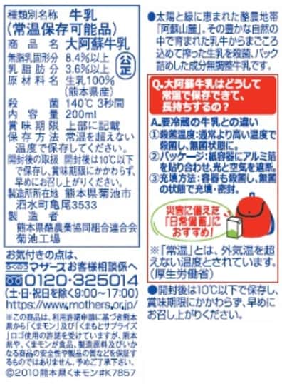 らくのうマザーズ 大阿蘇牛乳 200ml×48個 | 常温保存可能な成分無調整牛乳です。