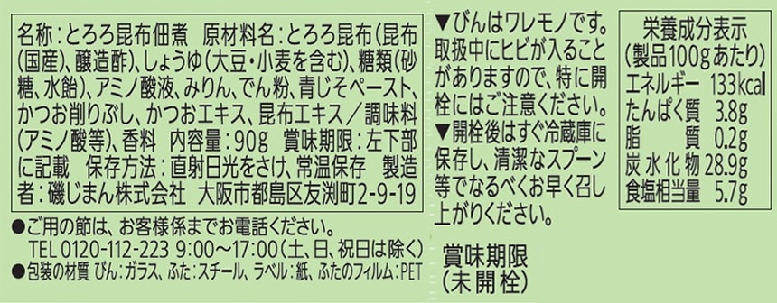 - 磯じまん とろろ昆布佃煮青じそ 90g×6個