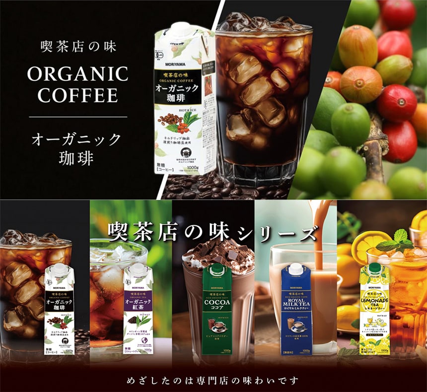 守山乳業 喫茶店の味 オーガニック珈琲 1000g×3本 | JAS認定有機栽培豆を100%使用した深い味わいの珈琲です。
