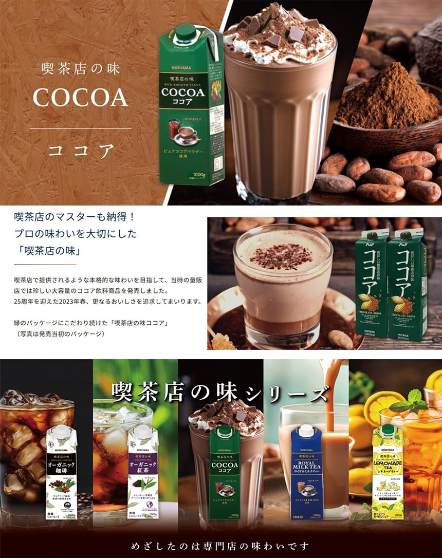 守山乳業 喫茶店の味 ココア 1000g×3本 | ピュアココアパウダーを使用した濃厚な味わいのココア。