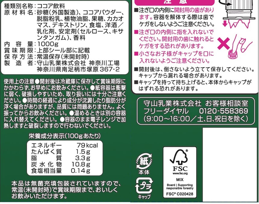 - 守山乳業 喫茶店の味 ココア 1000g×3本