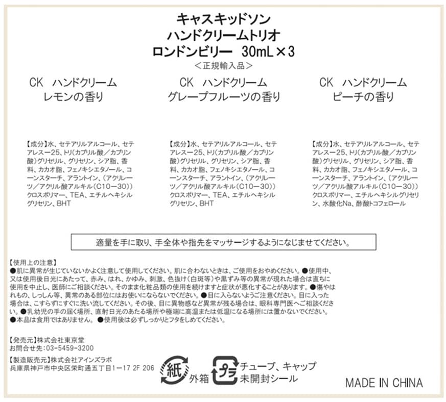 - キャスキッドソン ハンドクリームトリオ ロンドンビリー (30ml×3)×3個
