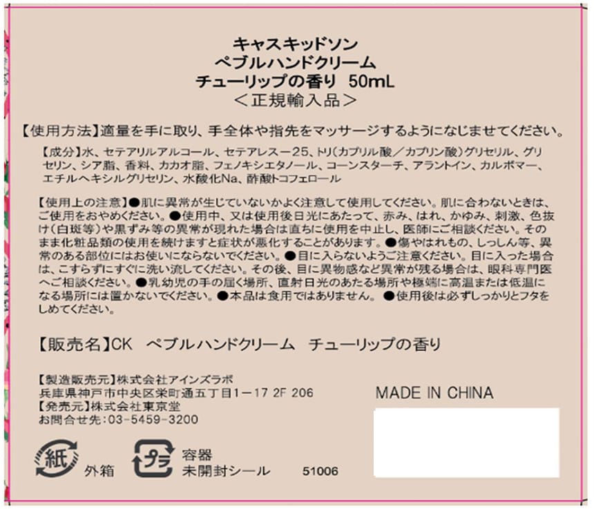 - キャスキッドソン ぺブルハンドクリーム チューリップの香り 50ml×3個
