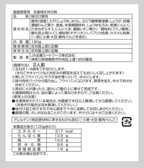 - 国産豚使用 生姜焼き丼の具 180g(2人前)