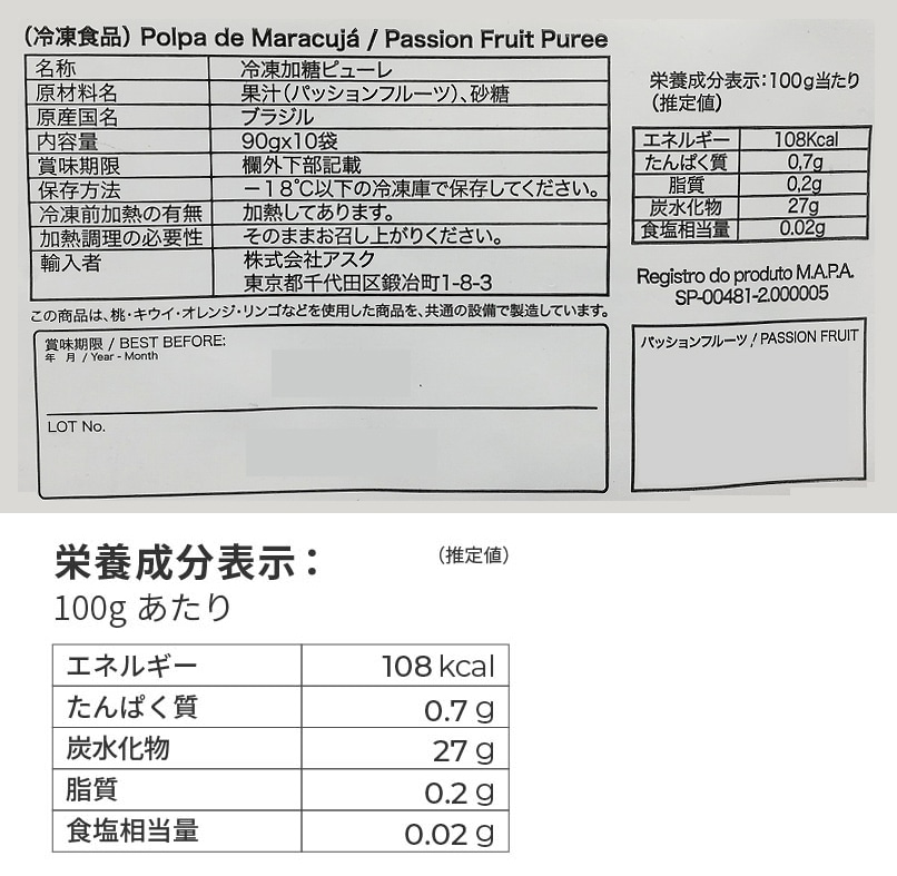 - トロピカルマリア 冷凍加糖ピューレ・パッションフルーツ 90g×10袋入