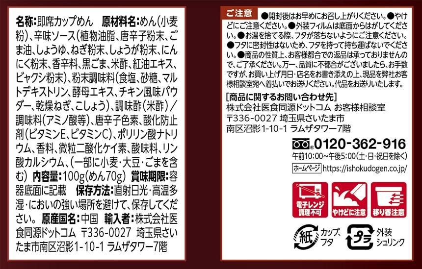 [2種計48個]医食同源ドットコム 中華房 麺ピー まろゴマ味 127g / 麻辣味 100g | 本場中国を旅した気分になれるまぜ麺の2種セット